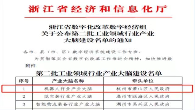 機器人行業產業大腦”項目成功入選,是杭州市唯一一個入選的產業大腦!