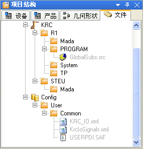 7. 從機(jī)器人控制系統(tǒng)傳輸?shù)?WorkVisual 的文件:黑色項(xiàng)目瀏覽器