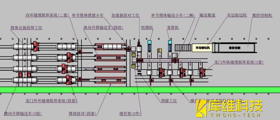 自動送料系統是大型罐體焊切自動化產線中實現高效生產的重要保障。它主要負責為焊接工序提供所需的原材料和工件,確保生產過程的連續性和流暢性 。
